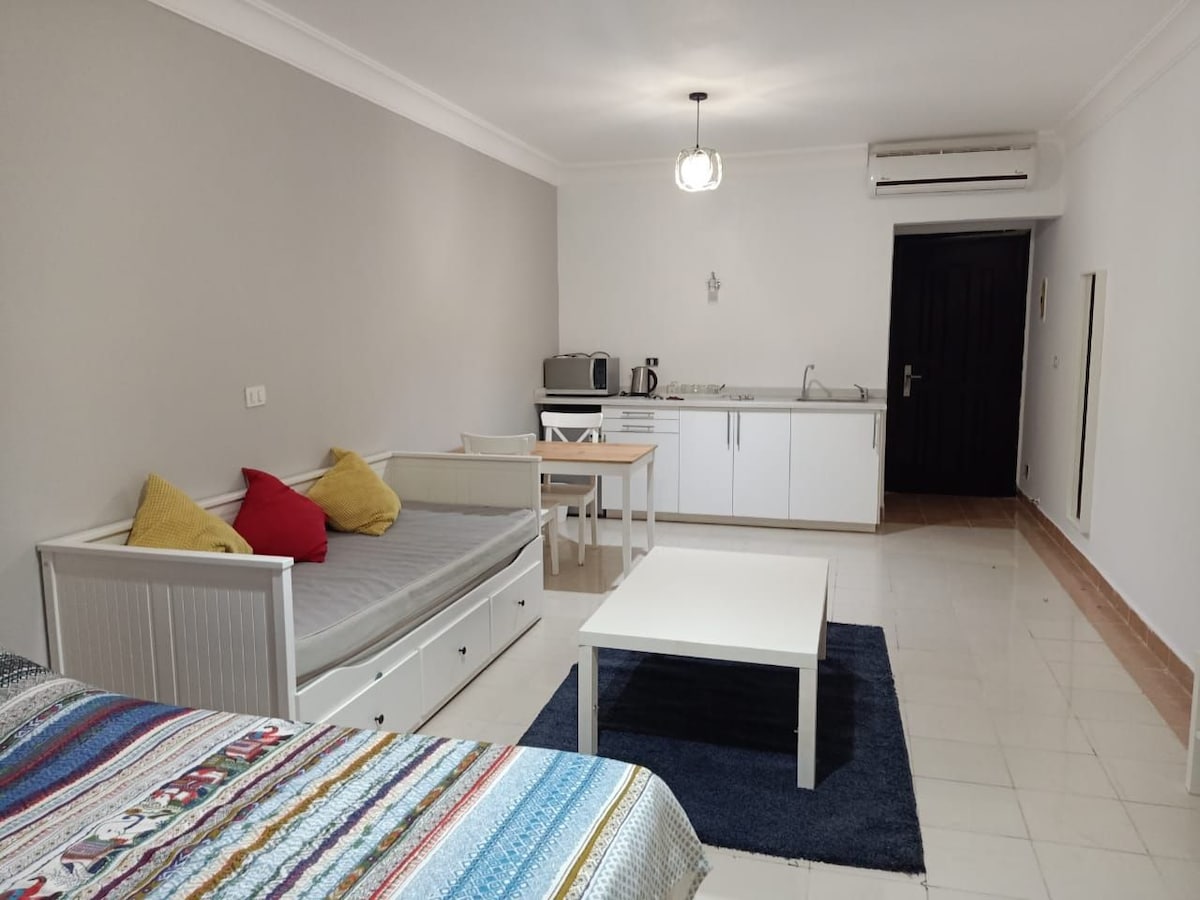 Money saver studio at Bali-Elgouna -Free parking. -3 Minutes to Gouna Festival area, 6 Minutes to Abu Tig Marina, 6 Minutes to Downtown. -Tv- mini bar refrigerator - Kettle - King bed 160cm. -PS: You may hear some water voice because there’s a Jacuzzi in the roof.