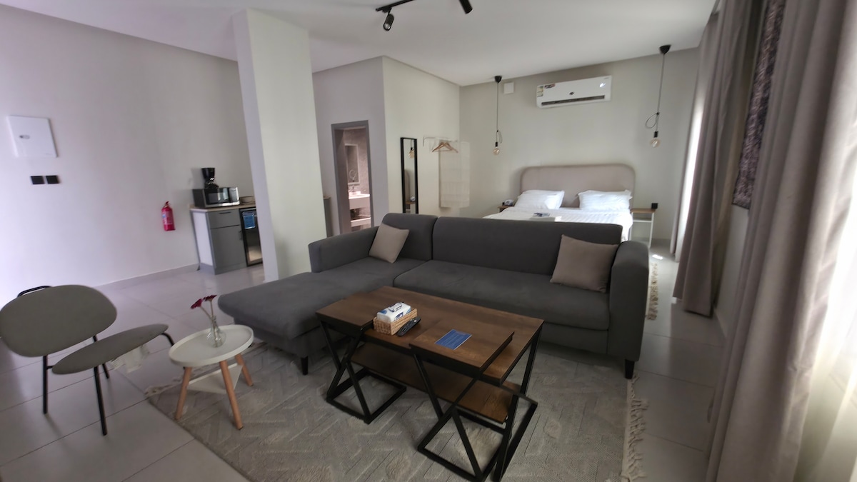 استوديو راقٍ بتصميم عصري وفي قلب جدة النابض ويوفر أجواء هادئة ومريحة لإقامة مثالية، مجهز بكافة الاحتياجات الأساسية مع عناية بالتفاصيل لضمان راحة الضيوف. مناسب للعمل أو الاستجمام ويمنحكم أجواء خصوصية عالية مع سهولة الوصول إلى المعالم والخدمات ويقع على طريق الملك عبدالعزيز . الموقع: يبعد دقيقة واحدة عن وقت اللياقة ٥ دقائق عن الردسي مول ٧ دقائق عن الواجهة البحرية و١٢ دقيقة عن المطار