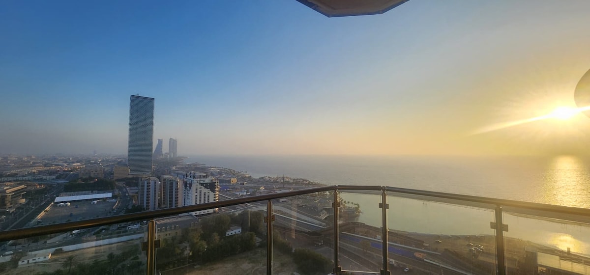 New construction with an open concept and an amazing view of the red sea and Jeddah city from 28th floor. Top of the line amenities ... bedding, furniture and appliances. Privacy is number one here. We think you will agree that it truly is the best view in jeddah city. This is a complete apartment from Damac tower. Total privacy ... your own private space.
