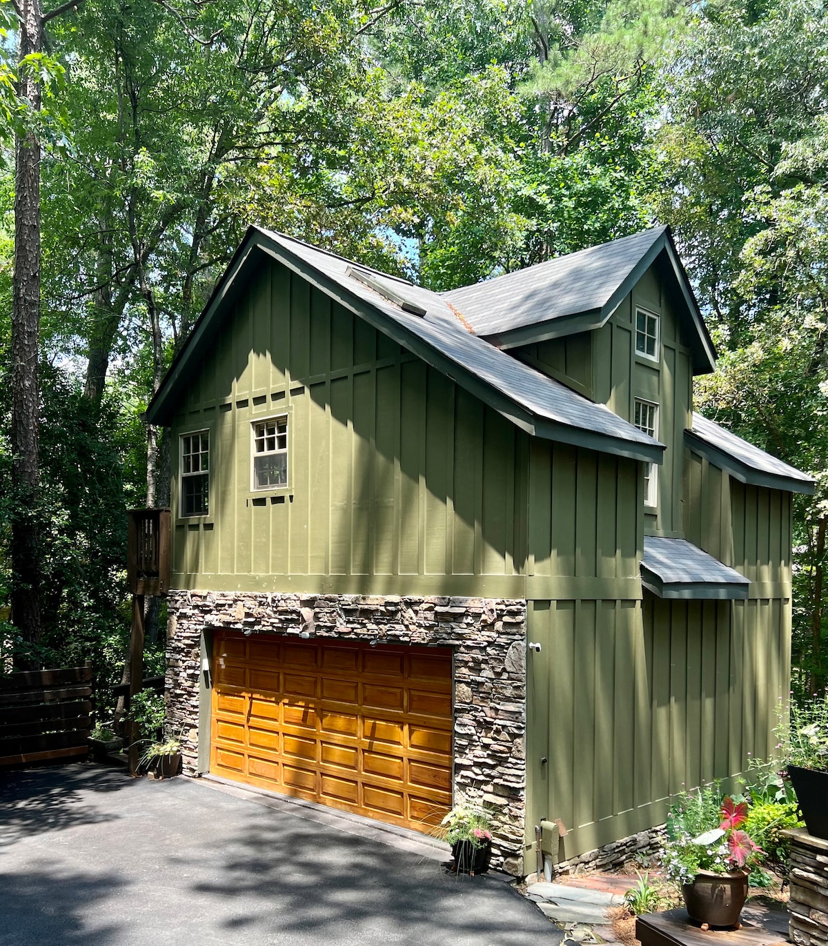 The Sawmill Cottage is 1500 SF cabin featuring a master BR and full bath on main leading to a spacious screened porch with beautiful view of woods. There is an extra Apartment available, see below. The second floor contains a loft BR with full bath. Located on wooded acreage with over a half mile of walking trails to beautiful Canton Creek with overlooking treehouse and hot tub. Only 5 minute drive to I-575, Northside Hospital, and retailing. Smart TV and wi-fi. Parking directly in front.