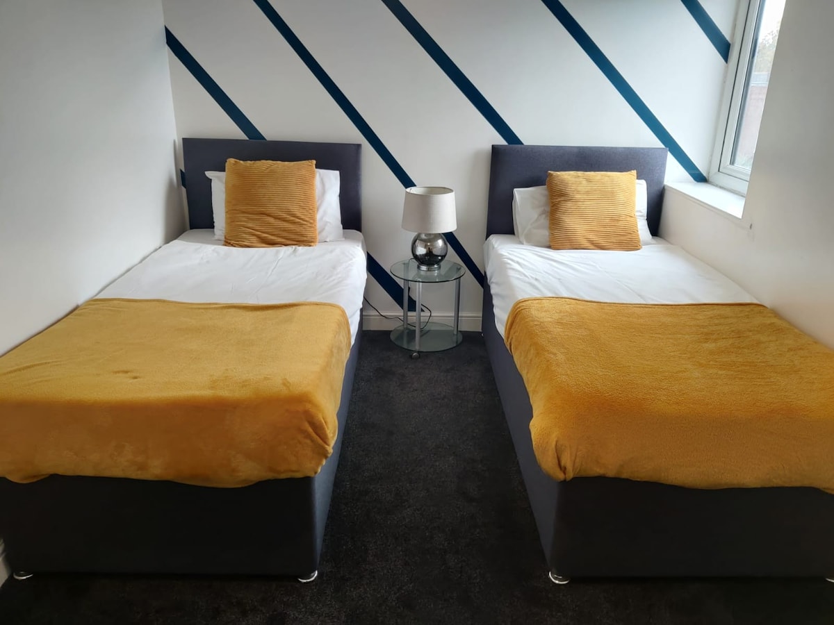 Private house (owner lives off-site). Wheelchair friendly. Located in a quiet cul-de-sac in Guisborough. This freshly refurbished semi Bungalow has on the ground floor, 2 or 3* bedrooms (option*) a wet room with roll-in shower, fully equipped spacious kitchen + dining area + laundry facilities. Also 2 bedrooms and 2nd bathroom upstairs. Bedrooms are secure and self-contained, with HD smart TV, tables, soft seating, storage, free Wi-Fi. Enclosed gardens front & rear. BBQ. Private & free parking.