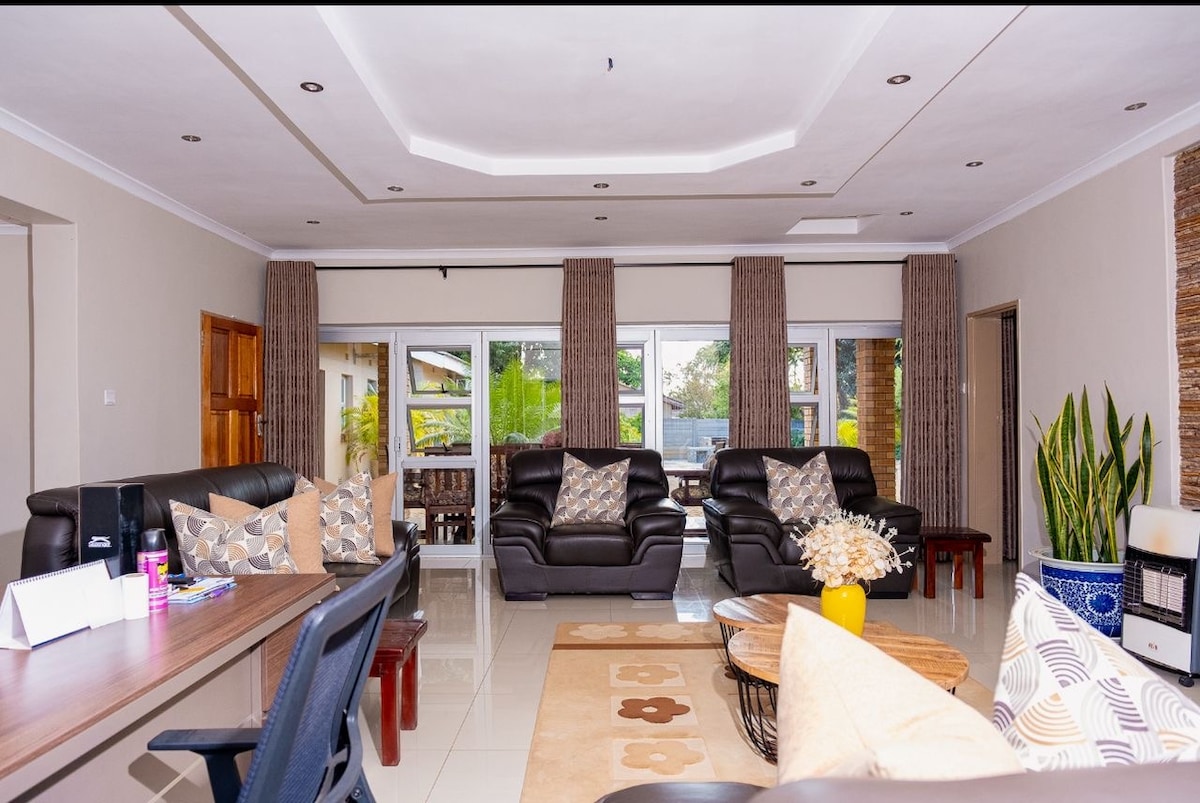 Beautifully furnished two-bedroomed apartments with en-suite bathroom facilities, a spacious lounge to relax on with friends and family, a well-equipped self-catering kitchen , bed and breakfast and dinner also available. Uncapped Wi-Fi and Dstv accompanied with an LCD HD TV. Free and secure parking space. An ideal home away from home, perfect for corporate, leisure and family travelers, suites long as well as short stayers