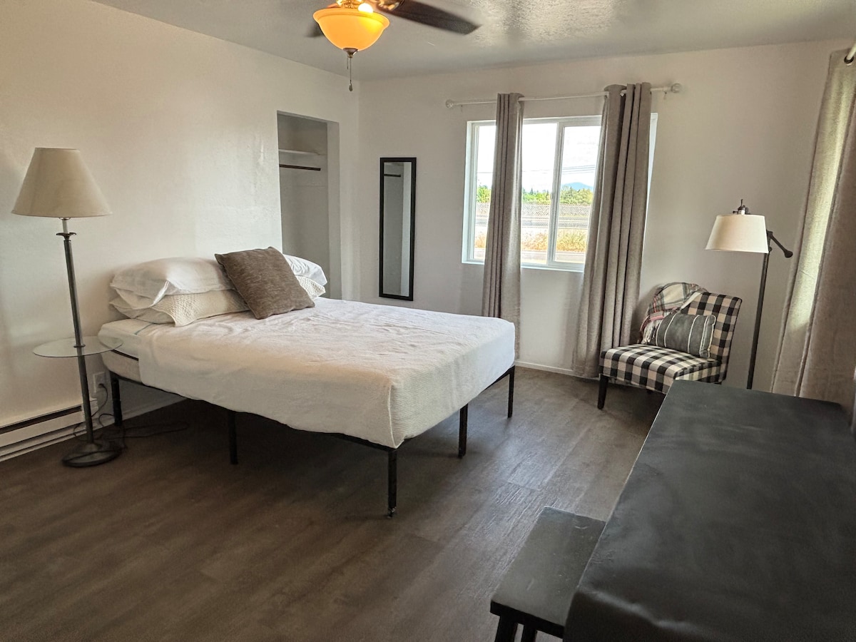 A quiet, clean, and cozy room with plenty of amenities - including a private bathroom. Perfect for resting on a journey down I-5 or spending a relaxing weekend in Redding. Keypad access lets you check-in through your own private entrance for ultimate convenience and privacy.