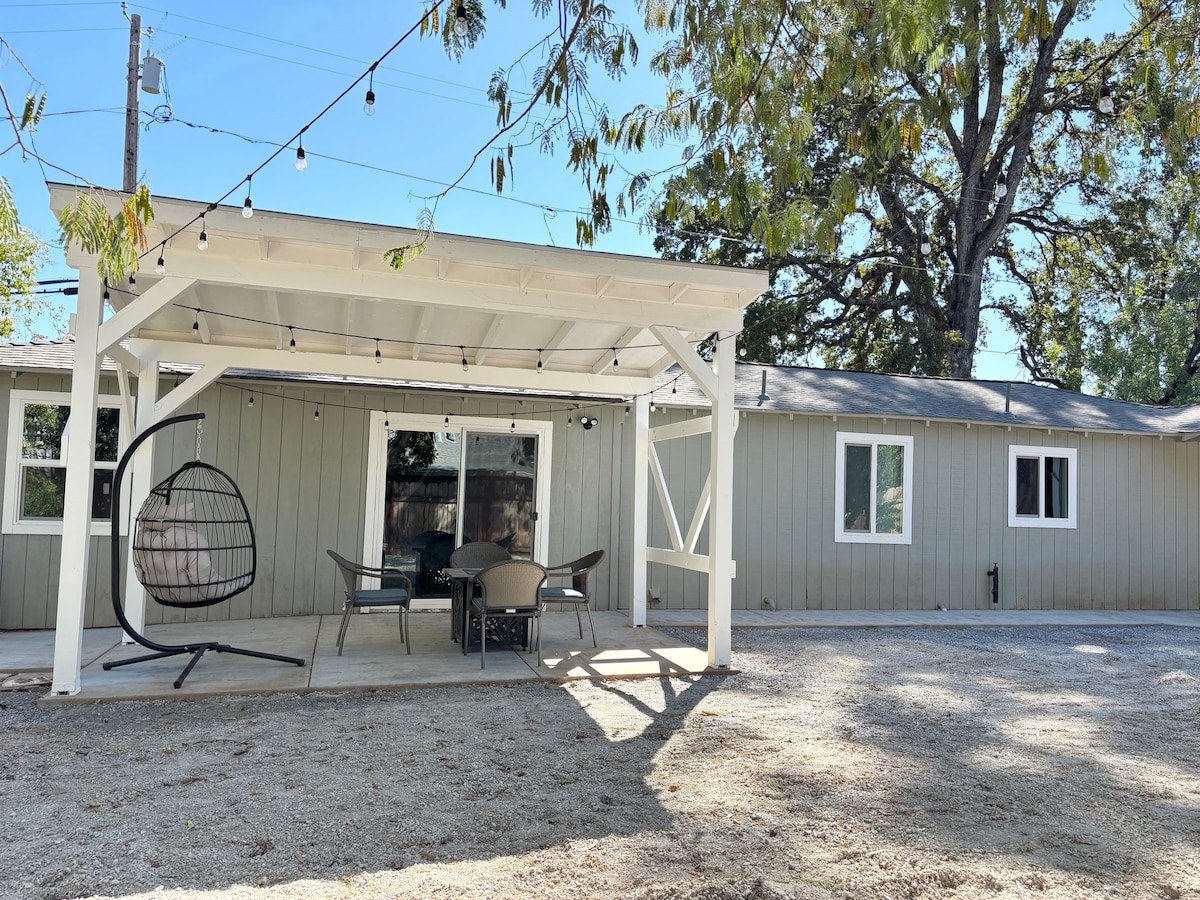 In town but feels like country! Private, safe large parking, and patio area with fire pit. Every comfort considered with large king sized bedrooms. Custom kitchenette with stainless appliances and quartz countertops. Linear gas fireplace, custom concrete hearth, 55" HDTV w/ surround sound, and built in cabinets. Custom oversized tile shower with skylight and tankless hot water. Central Heat & A/C. EV Charger! Easy keypad entrance. Close to I-5 & CA-44. Pet free home. COR Permit SDD-2026-00121