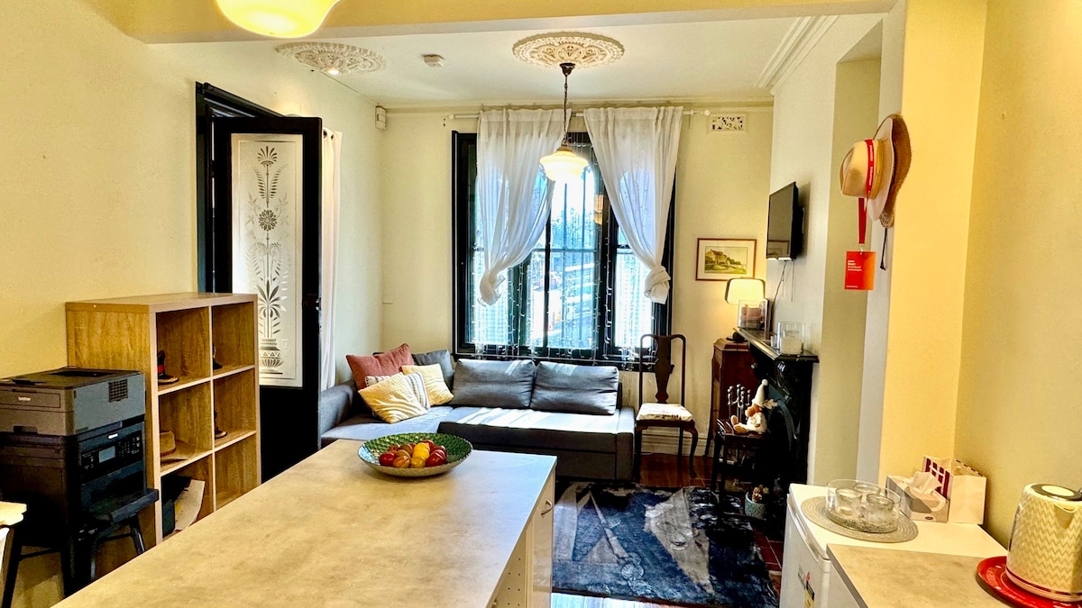 Under 5 minutes walk to trains, trams, bus, gym, swimming pool, parkland, cafes, bars, supermarket, church, leading theatre, MCM furniture, and eclectic retailers. Amidst all this is our apartment which is the upper half of a traditional 1880’s terrace house. The apartment has its own private entrance, a covered balcony, and a courtyard. It is furnished with vintage pieces to create a stylish and relaxed interior. Parking is available for a small car, at $40 per day. DM me to discuss.