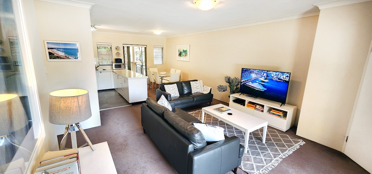 Bright and airy one bedroom apartment nestled on top of Diamond Bay Cliffs with breathtaking ocean views. The stunning view overlooking the cliffs and the soothing sound of waves, provide an incredible connection to the ocean from awe inspiring sunrises to frolicking whales throughout the day. Relax with a wine or coffee in this beautifully styled home surrounded in comfort and serenity. Take a dip in the pool overlooking the ocean or take a walk along the cliff walkway. Free street parking