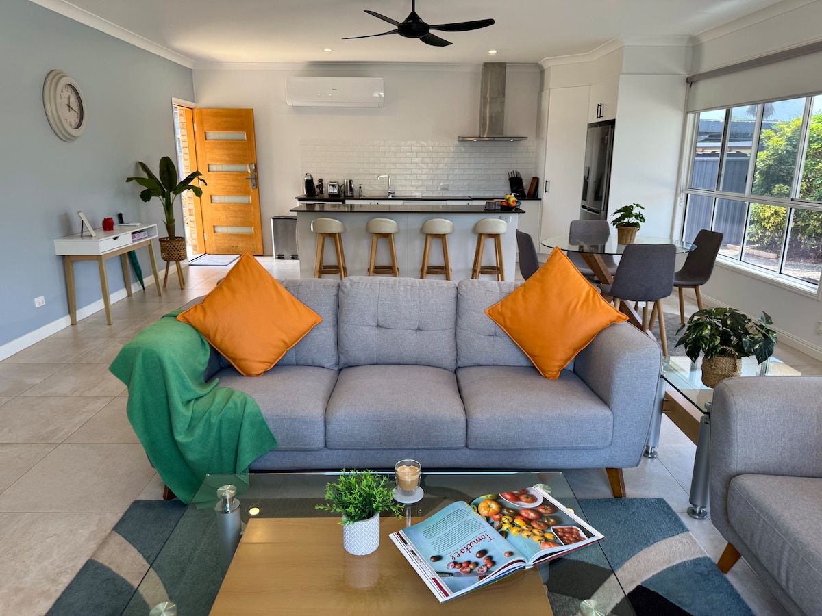 Situated between Brisbane and the Gold Coast on a peaceful semi-rural acreage only minutes from the M1. Shops are close by as are two competition golf courses. Carbrook Cottage is a brand new residence and the owners have thoroughly enjoyed landscaping and setting up the cottage with the comforts of home. Award winning Sirromet Winery is only a short 8 minute drive away making this a fabulous accommodation option for weddings or Day On The Green concerts.