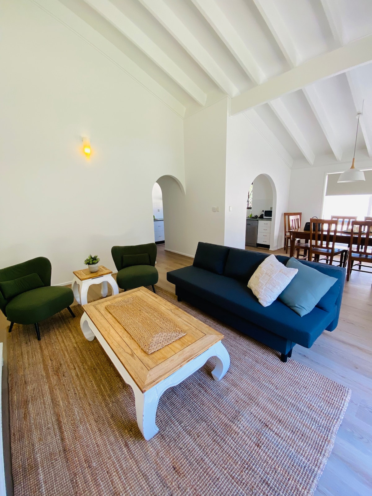 Self-contained, modern apartment, 10 mins walk to the shops & another 5 to the ferry. Netflix and Amazon Prime. All the expected comforts and conveniences, and more. The living room & shared patio look directly out over a small farm. Sheep, ducks, and chickens are your next-door neighbours. Relax & experience Russell Island's charm for either work or pleasure. Your hosts live on the premises and will help with anything you need.