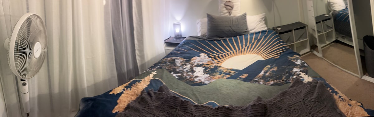Take a break and unwind at this peaceful oasis. May's is one of two fully self-contained apartments within this building. Each apartment has it's own entrance and you can enjoy your exclusive outside stone bath, relax in front of the indoor fireplace, cuddle up on the king-sized bed or veg out in the hammock. This beautiful bushland property has high-tide access to Moreton Bay, is 10 minutes drive from Straddie's beaches and 15 minutes from Brown Lake. You'll feel like you're in another world.