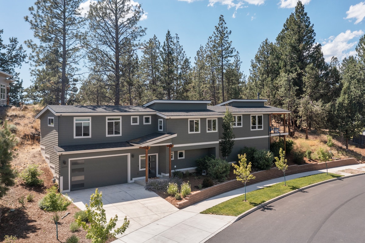 A wall of glass provides panoramic views of the iconic Smith Rock formation, creating a seamless connection between the indoor and outdoors. A sleek and sophisticated modern home perched on the rimrock and flooded with sunshine. King beds and a luxurious bathroom with steam shower. Includes Smith Rock Pass. *No parties or pets* (including support animals) please - this is a 'pet-free' home for guests with allergies. Trip insurance recommended if illness, weather or smoke may be an issue.