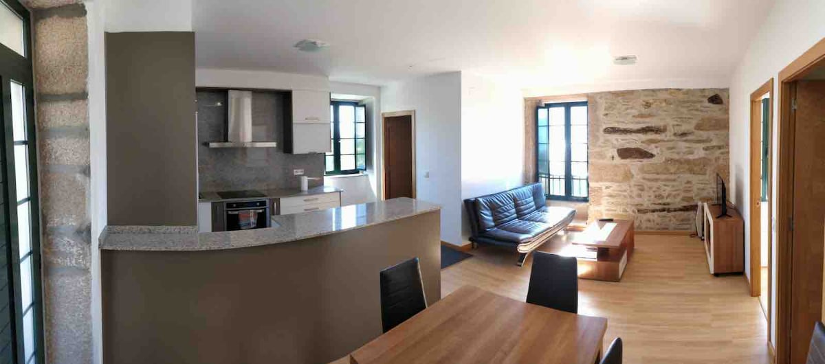 OBSEQUIO: Kit desayuno (ver foto)+bizcocho+ botella cava+leña Ponemos a vuestra disposición este capricho de casa NUEVA en las afueras de Vigo. Es una casa de 55 m adosada a otra idèntica. La casa tiene jardin privado solo para vosotros de unos 200 m totalmente cerrado y con total intimidad. Tiene parking exclusivo dentro de la finca. Internet-Wifi por fibra 600Mb, ideal para teletrabajar. Localización perfecta para hacer de la casa la base para excursiones por Galicia. La autopista a 5 min.