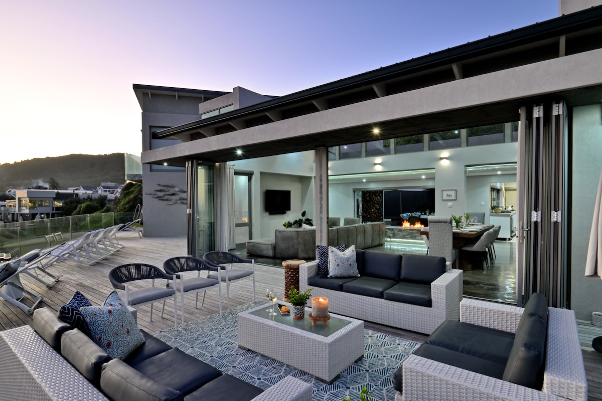 Experience the ultimate coastal lifestyle in our luxury cliff-top home with stunning ocean views from every room. Our organic modern design features natural wood and designer soft furnishings. Dip in our semi heated pool, or enjoy our yoga & chill deck or cook a meal in our designer kitchen. Complete with solar power system & set in a private nature reserve. Just 25 mins from George Airport, 15 mins from the Garden Route Mall and Wilderness. Come unwind in comfort & style.