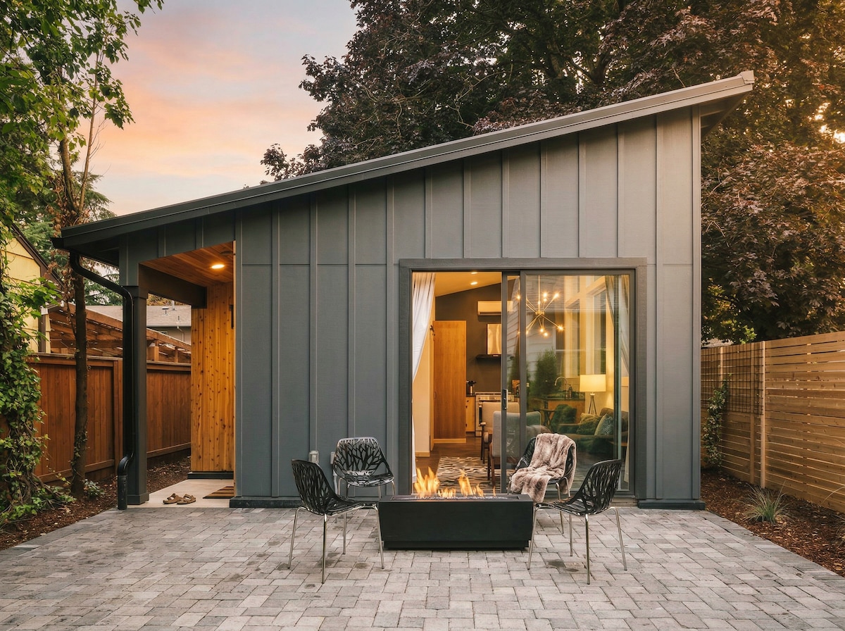 Now Net Zero Energy! Dwell has 18 solar panels that cover more electricity that the building uses! New modern House with gourmet kitchen. Enjoy the tile shower with endless hot water, smart tv, and cozy furniture. Short walk to Woodstock village with Double Mountain Brewing, New Seasons. Easy access to public transportation, or sit back and relax on the patio with firepit. Light and bright guest house and you have the place to yourself. There is a fenced yard that is pretty private.