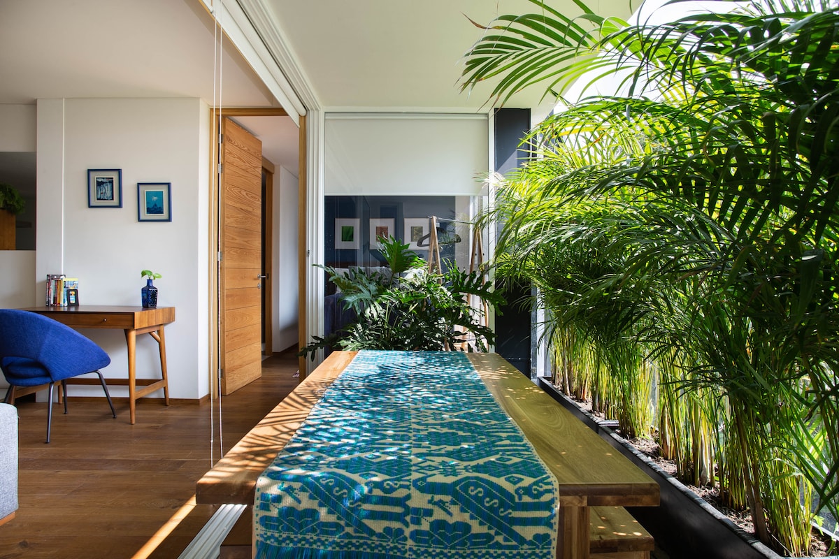 This one of a kind and cozy pent-house is located inside one of the most emblematic developments built in La Condesa neighborhood. Its architecture is a contemporary version of Art Deco. A style that defines La Condesa. It is located in a beautiful, tree-lined area. The atmosphere is very family-oriented, with young and vibrant people. The surroundings invite us to step out, walk, relax and discover new experiences.