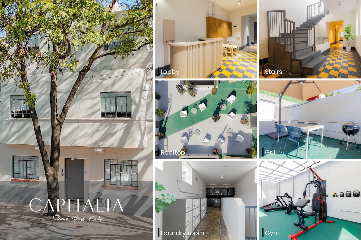 Welcome to Capitalia | Chic City Retreat, a luxe loft in the heart of Mexico City's historic district. Combining modern comforts with local charm, the loft features a king bed, a fully equipped kitchen, and inviting décor. Step outside to explore iconic landmarks, vibrant markets, chic boutiques, and gourmet eateries. Capitalia is more than a place to sleep; it's your urban sanctuary for an unforgettable city adventure.