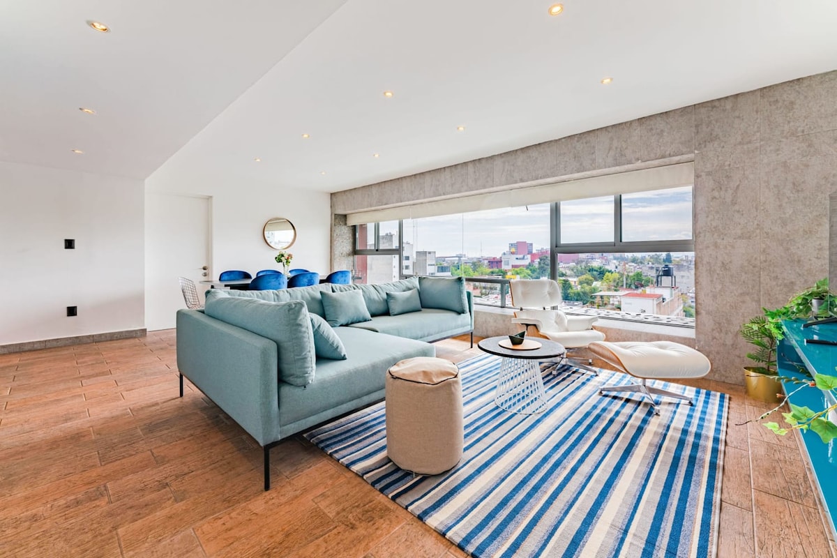 明亮的公寓,带景观,靠近Reforma