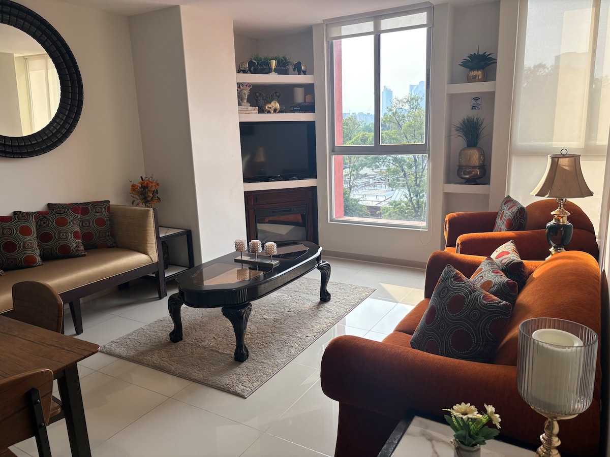 Cozy high end apartment that fronts “PARQUE ESPAÑA” one of the biggest parks located in the heart of la CONDESA, 2 BDR in 2nd level, 2.5 Baths, Carrera Quartz Countertop, Huge private patio, Dish washer, Alcohol Fire Place, Laundry Room, high speed Wifi, Free Netflix on 4 smart TV’s Amenities are a DEAL MAKER! pool, gym, valet parking, Roof top Bistro (not included) Security guards 24h.