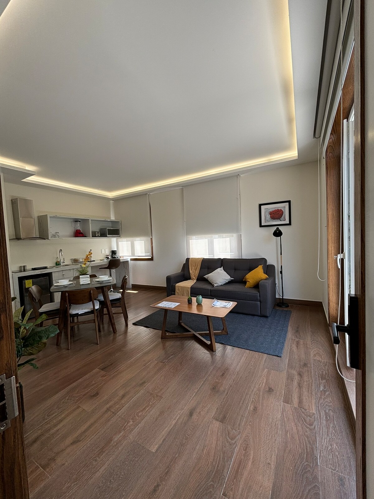 Nuestra suite cuenta con cama king, cocineta equipada, sala de televisión, (Smart TV)comedor, baño privado, muebles de diseño, internet de alta velocidad , aire acondicionado en una excelente ubicación, entre Paseo de la Reforma, la Zona Rosa las Colonias Roma y Condesa, que son el centro de la vida más Vibrante de la Ciudad y de todas las vías de comunicación que son: Metro, Metrobús , Turibus, Taxis..