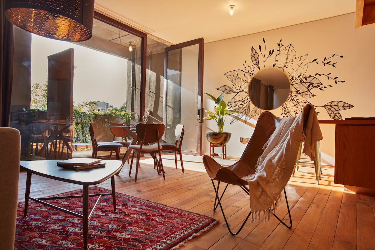 delightful 120 sq. m. loft within a unique house built in 1905 on havre, one of the best streets for its variety of top notch food options in colonia juárez. the house was fully restored adding some contemporary language to its tipically porfirian architecture. the space has been furnished with pieces of mexican and international mid century modern.