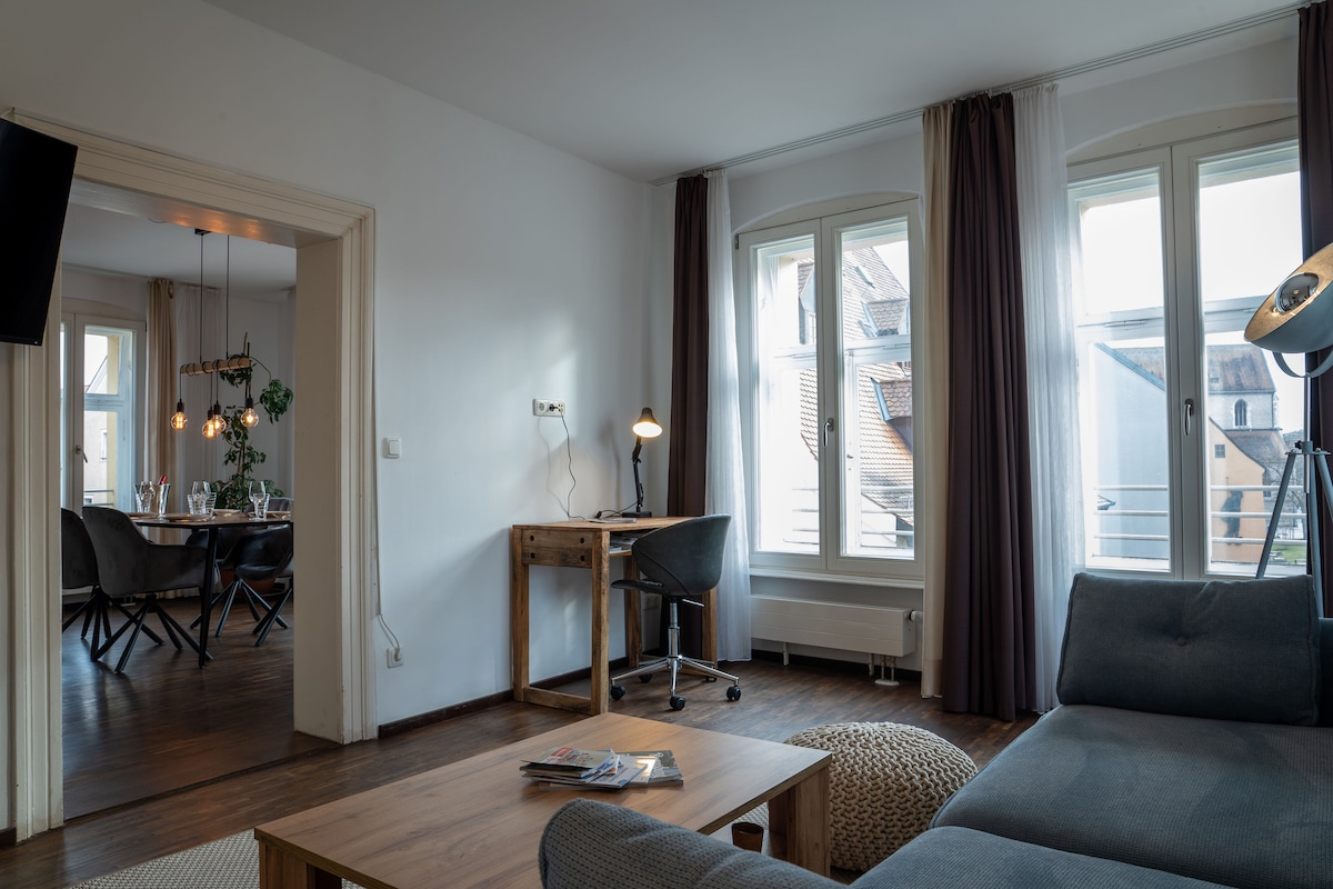 Our cozy gallery apartment in Regensburg's old town offers you the perfect starting point to explore the city and all other sights. Both bathrooms and the kitchen are newly renovated and offer everything you need. The open architecture gives the accommodation a special flair. Please note that the two rooms are connected by the stairs, and therefore not separated by a door.