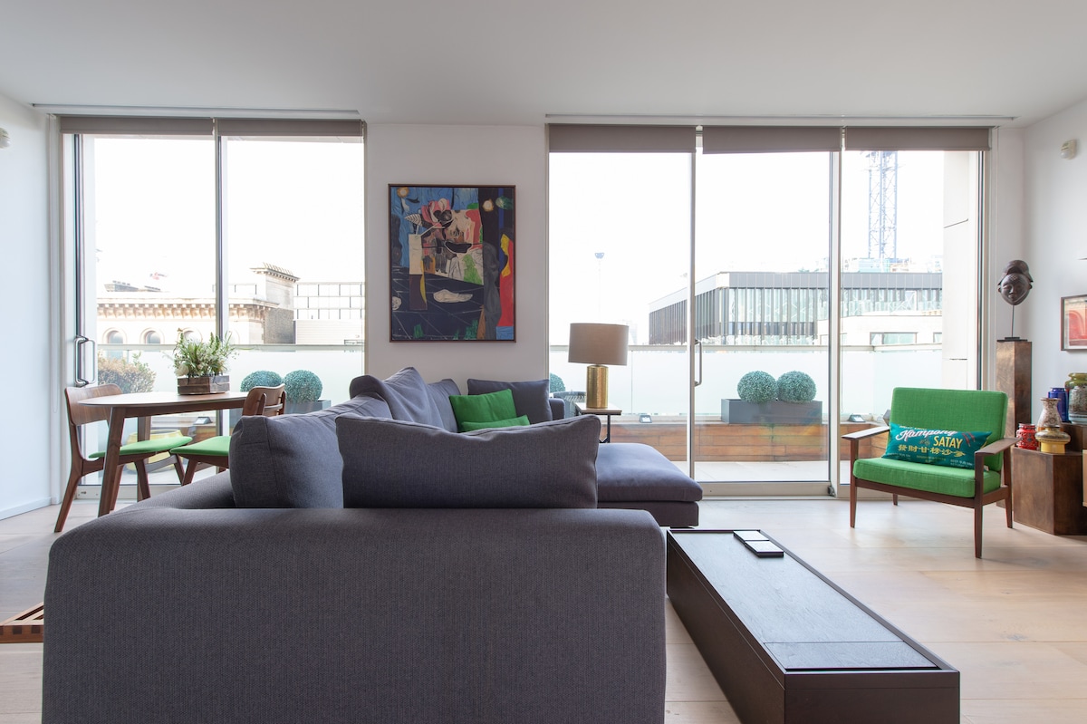 Experience the essence of stylish urban living in a landmark historic building in the heart of Clerkenwell. Quiet & secluded yet just minutes from the buzzing shops, cafes and restaurants of trendy Exmouth Market, this spacious apartment will appeal to architects, designers—or just about anyone with a taste for the very best of London. With a fully-fitted kitchen, dishwasher, oven, washer-dryer and even home cinema setup, it's ideal for business travellers, couples, groups and families alike.
