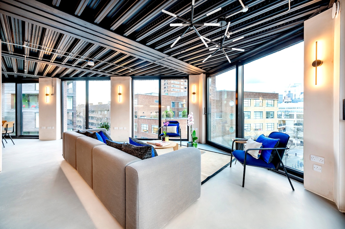 This sleek and contemporary loft apt offers captivating views of the city skyline. The expansive open-plan living area is illuminated by natural light streaming through floor-to-ceiling windows and showcases a chic, minimal, industrial-inspired aesthetic. Perfect for those seeking a distinctive living experience close to one of London’s most dynamic neighborhoods, while enjoying the calm and sanctuary of this remarkable apartment.