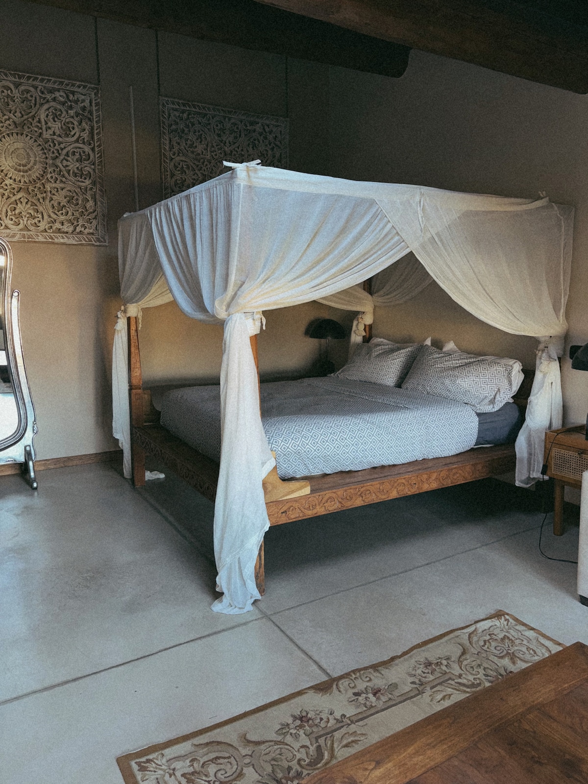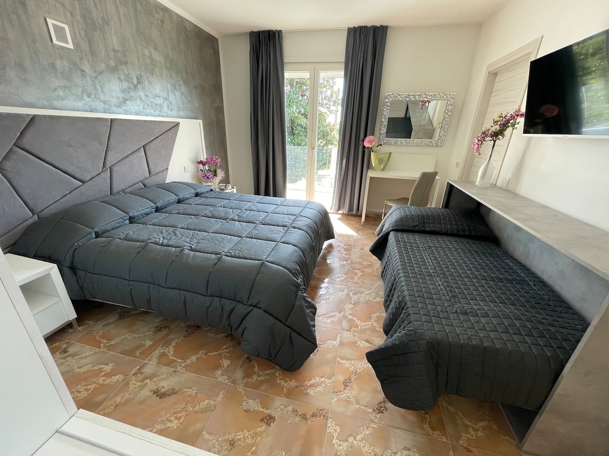 La stanza è di 26mq, con letto matrimoniale, vista piscina, zona relax con due poltrone, una piccola scrivania, armadio per sistemare i vestiti, libreria con volumi a disposizione per la lettura. Il bagno, appena fuori dalla stanza, luminoso con vista sul giardino, è privato. C’è un piccolo frigo presente nella vostra stanza.