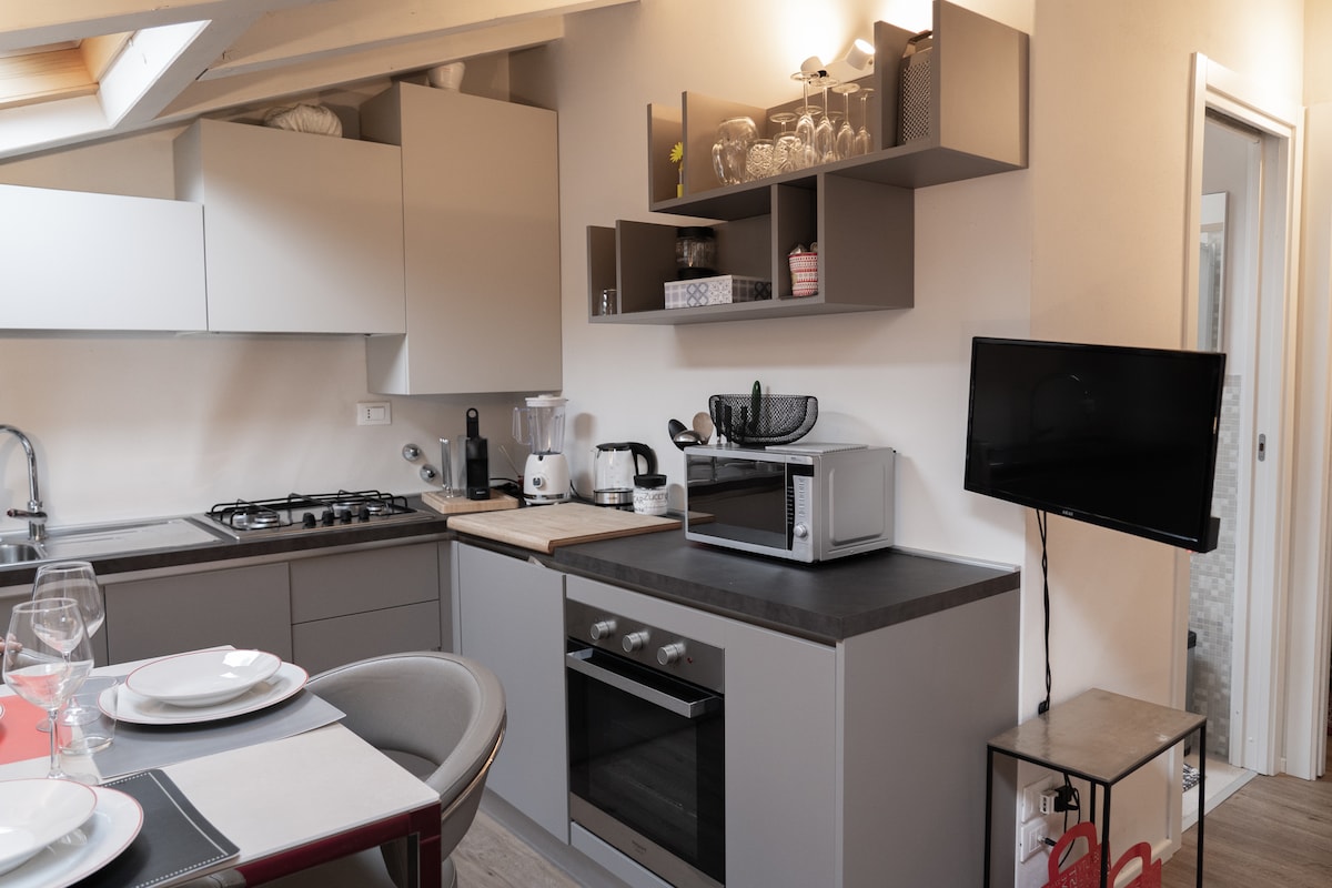 Appartamento in zona centrale in elegante edificio completamente ristrutturato nel 2025. Arredato in stile minimalista, ideale per chi cerca comfort e funzionalità. La zona giorno è composta da una completa cucina attrezzata perfetta un divano e una SmartTV per momenti di relax. Camera da letto è arredata con una accogliente vasca idromassaggio e una smartTv e un comoda area di lavoro. Perfetto per soggiorni brevi in coppia o anche prolungati per lavoro in un ambiente curato e accogliente.