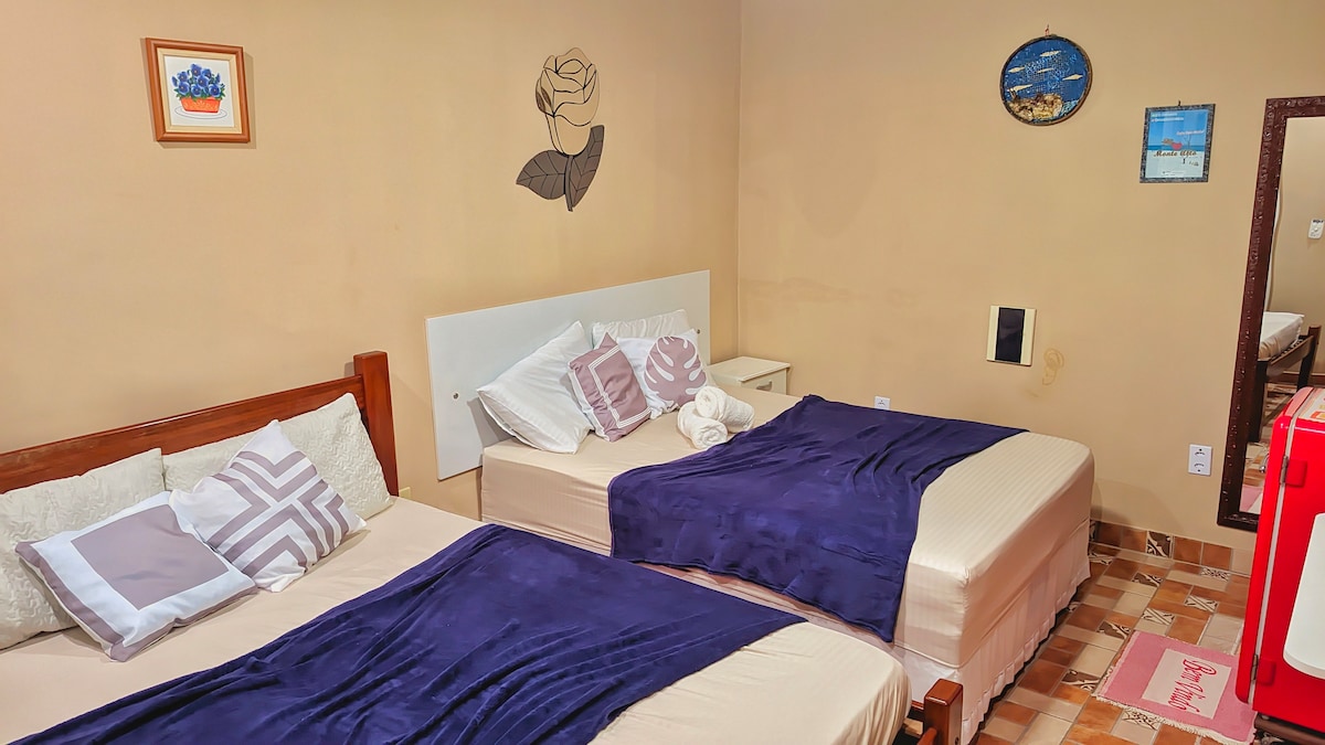 Este lugar único tem um estilo próprio. O Bemiquer tem a proposta da casa aberta para que haja entre hóspedes e moradores integração e convivência numa dinâmica semelhante a uma residência. A suíte LOTUS é composta por cama de casal, ventilador, banheiro exclusivo e a vista de um belo jardim. Áreas compartilhadas: * Piscina * Deck * Churrasqueira * Varanda com redes * sinuca Saleta com tv Muito verde Oferecemos: Wi-fi Vaga na garagem à combinar Café da manhã simples sob taxa