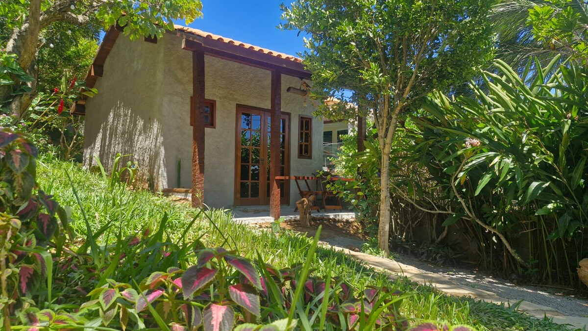 Relax in this calm and unique space! Rustic seaside cabin in Monte Alto, designed by a Frenchman in love with Brazil. - Unique, charming, cozy, and beautiful. - Full of style. - Surf beach. - Neighborhood of fishermen and their families. - Perfect for those seeking tranquility. - 2 bedrooms (all with air conditioning) - 1 bathroom - 1 perfect outdoor area ! Bring your own bed linen and towels. ! Duvets and pillows provided.