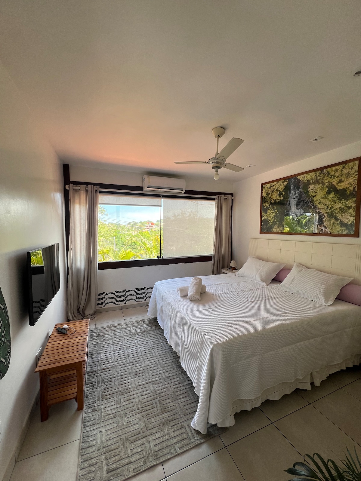 Apartment surrounded by the lush nature of Arraial do Cabo. Perfect for couples and small families. Just steps from the lagoon and a few kilometers from the main beaches. The condo offers several leisure options and Wi-Fi. In addition to the leisure areas, guests have access to paid services such as a BBQ area, restaurant, bar and laundry (all subject to availability). Free on-site parking included.