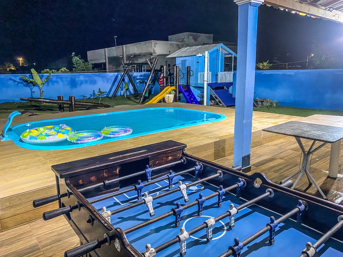 Ideal para quem procura uma estadia tranquila para curtir piscina e churrasco com a família. 📌 Localizada no Caiçara, distrito de Arraial do Cabo. Na rua amaro. - 40 min do centro de Arraial do Cabo de carro. 🧾 Excelente casa independente composta por: Sala, cozinha, 02 quartos sendo 01 suíte com ar, banheiro social, área de serviço, varanda, área com churrasqueira, piscina e garagem para 2 ou 3 carros ( Dependendo do tamanho) . obs: trazer roupa de cama e banho. Temos caixa de som.