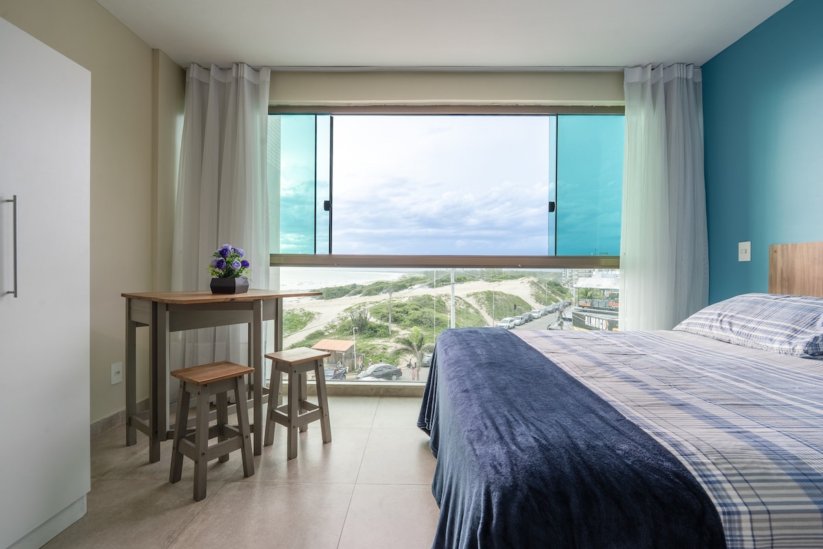 - NÃO PAGUEM SEM ANTES CONSULTAR DISPONIBILIDADE Loft com cama de casal que acomoda até 5 pessoas, com linda vista total para o mar do 5º andar! A vista é maravilhosa! As fotos não conseguem passar a beleza. Roupas de cama, banho e cobertores não são fornecidos, apenas travesseiros, podendo ser alugados.