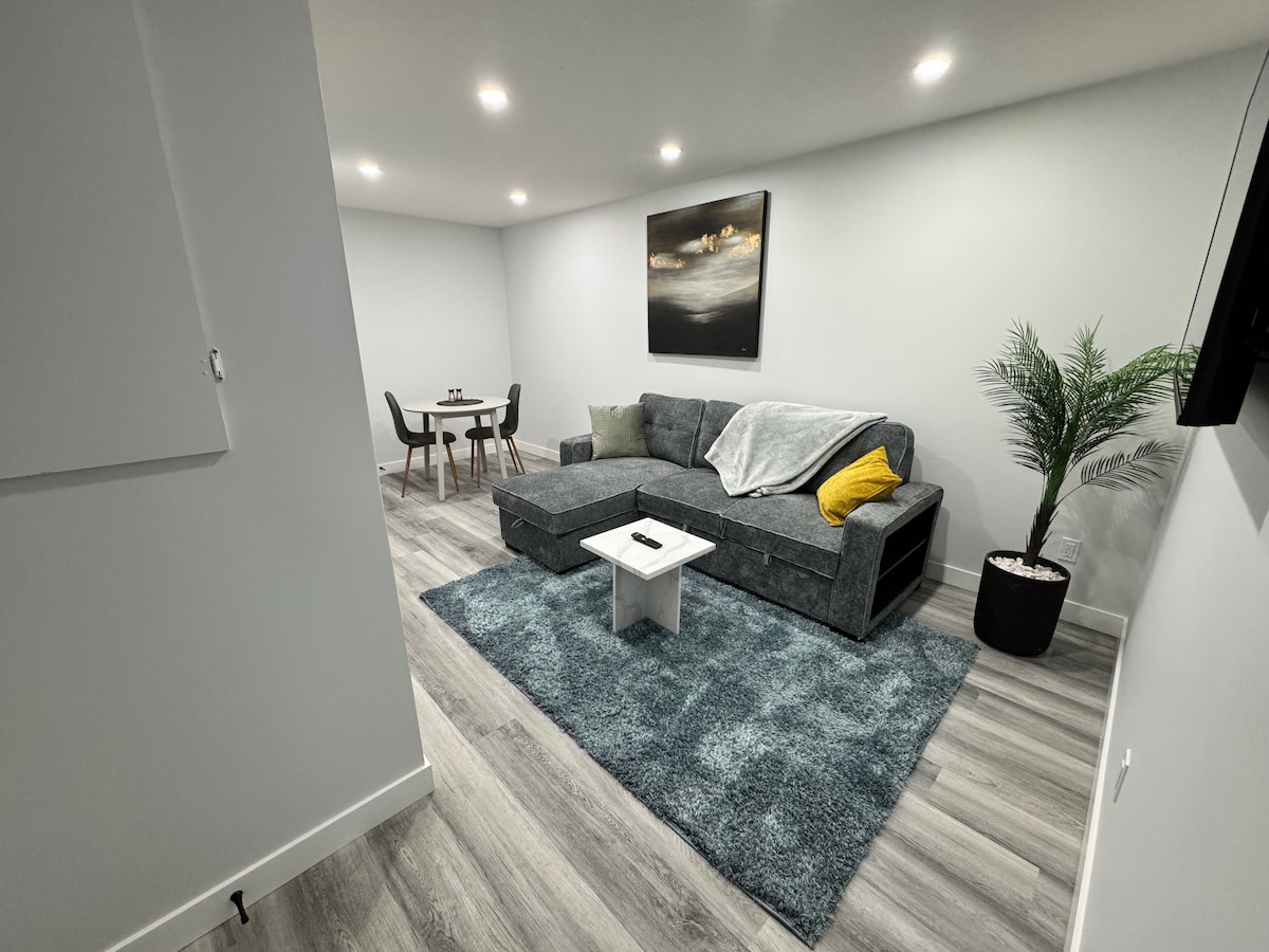 Tucked away in one of the city’s newest prime neighborhoods, this brand-new basement suite invites you to reset. Soft neutrals and clean lines set a calming tone, while curated touches bring quiet luxury. Sink into a full-sized bed, stream with fast WiFi, and explore with ease. Whether you’re here to work, wander, or unwind, this peaceful retreat makes every moment feel intentional. Enjoy a 10% discount on stays of 7 nights or more. Get 20% off when you book for 28 nights or longer.