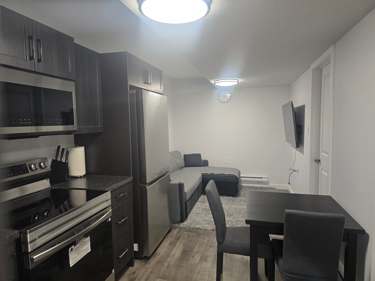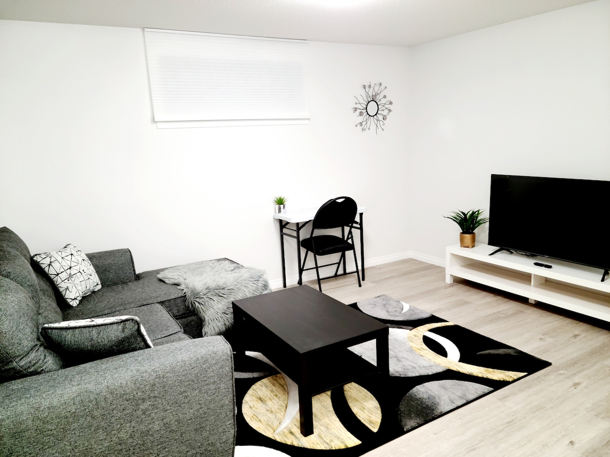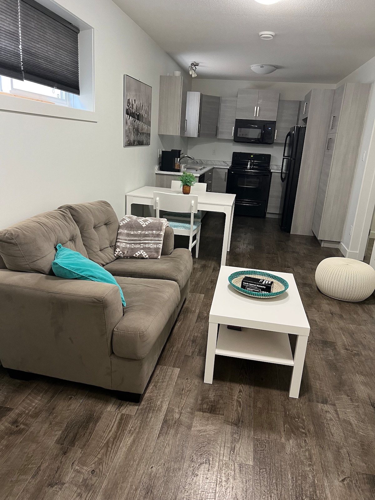 Welcome to my brand-new, cozy one-bedroom basement suite, situated in a quiet neighborhood in the west of Regina. This suite has a private entrance and 1 free parking spot. Easy access to the Regina Bypass, Ring Road, and Trans-Canada Highway. Only 4 minutes from RCMP, 6 minutes from Cargill, 8 minutes from Regina International Airport, and 9 minutes from Mosaic Stadium 10 minutes from downtown. Playground and green space across the street. Can't wait to host you!!!