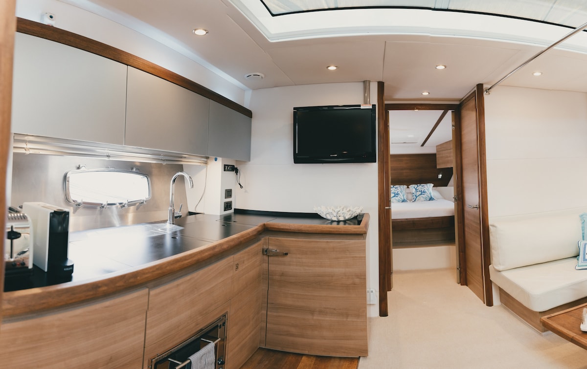 Come aboard our cozy yacht equipped with heating, air conditioning, electric barbecue, and ice machine. It features two double cabins, one with a spacious bed for the captain, to make you feel at home. With two bathrooms and showers, and a prime location just five minutes from the center of Cartagena with free parking. It's the perfect getaway for an unforgettable getaway! * Self Check-in * Video link with photos captions. High-Speed Internet 5G