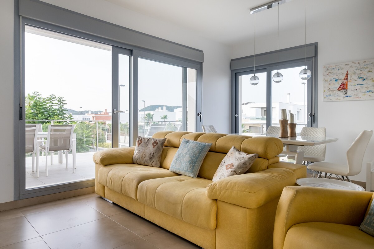 This luxurious 3 bedroom corner apartment with workplace and extra large south-facing terrace for relaxing outside is located on the second floor of the popular Flamenca Village resort. It is equipped with comfortable furnishings both inside and outside and is ideal for a holiday or outing with friends, children or family. It is located right in the heart of the tourist center of the Costa Blanca.