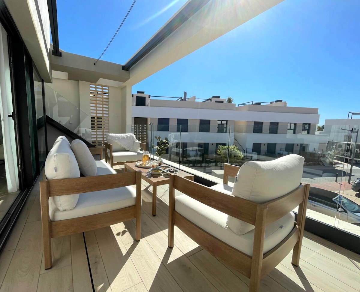 A luxury 3 bedroom villa situated on Europe’s largest ‘crystal’ lagoon. A unique award winning resort. Set over 3 floors, the property can host between 6 and 8 people (8 if using large sofa bed). Located on a beautiful new development that includes a breathtaking crystal lagoon, a Chiringuito beach bar on an island, several beaches, an a la carte restaurant, a gym, 18 hole mini golf, putting practice green, and sports courts. A resort like no other