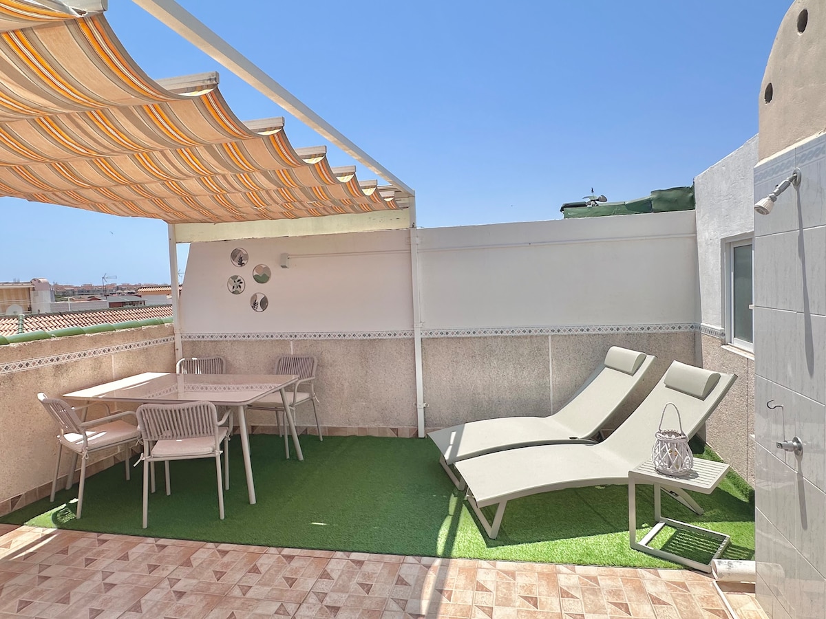 Recently renovated cozy penthouse with a private terrace, very bright and well-located in El Palmar. Only 6 minutes from the center of Murcia in car and 35 minutes from the coast and beach areas, including the Calblanque Natural Park and La Manga. The area offers various supermarkets and pharmacies. The apartment is located just a few meters from the renowned tattoo artist Ganga Tattoo, the Virgen de la Arrixaca hospital.
