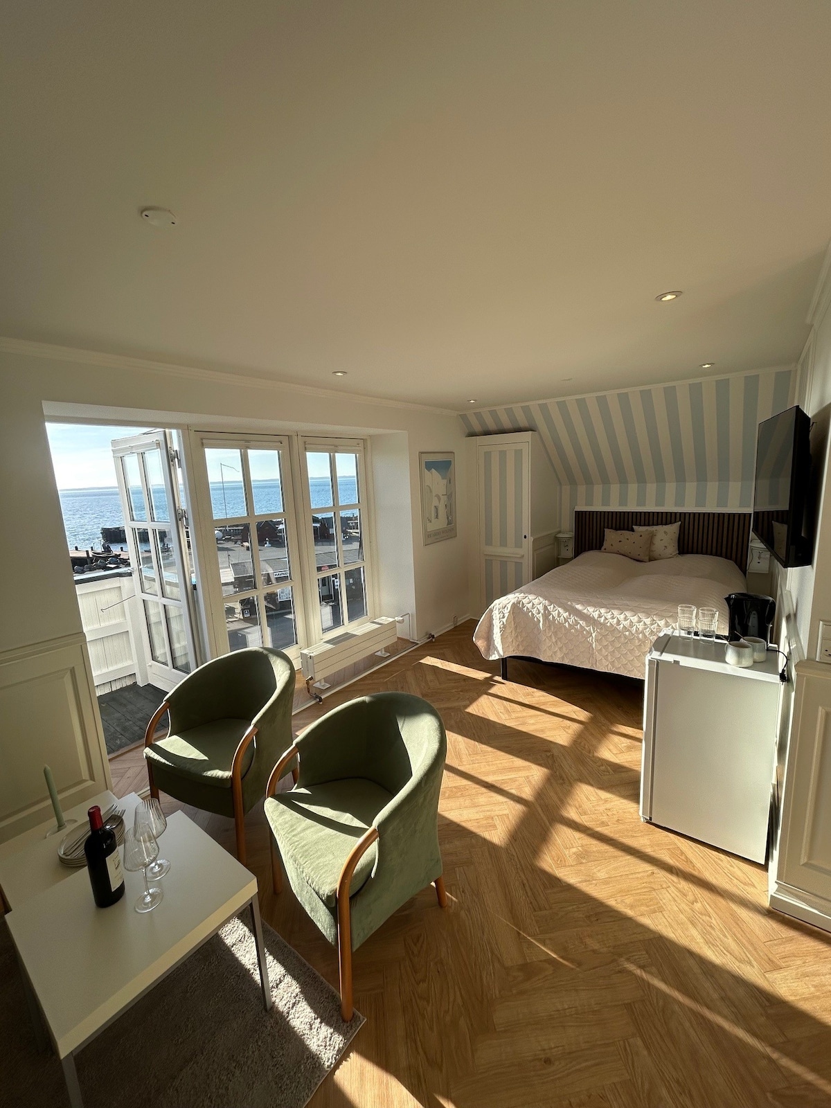 Nyd et ophold i et nyrenoveret, lyst og charmerende værelse i det lille badehotel Færgegården, i Lohals. Her er ro, hygge og moderne komfort. Du bor med udsigt til vand og marinaen med caféer, restauranter og isboder samt få skridt fra stranden. Perfekt til par, familier eller jer, der ønsker afslapning tæt på vand, natur og gode oplevelser.