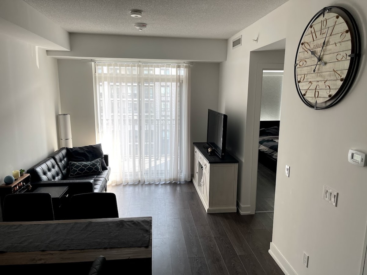 Cozy 1+Den Condo in Downtown Unionville Stay in our modern condo with 11-foot ceilings, two beds, a fully equipped kitchen, and a 4K TV. Enjoy access to the building’s pool and gym for your convenience. Located just 5 minutes from Unionville GO, 30 minutes to downtown Toronto or Pearson Airport, and close to the Markham Pan Am Centre. With restaurants, gyms, and VIP theaters nearby, it’s the perfect base for work or leisure. Book your stay today to experience the best of Unionville!