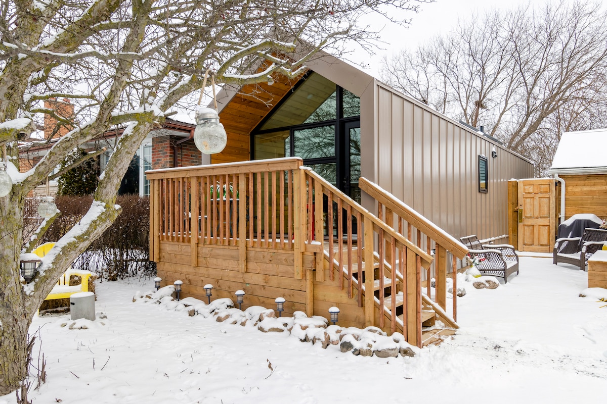 This memorable place is anything but ordinary. A fully equipped Tiny Home nestled in a quiet area of Peterborough. Beautiful high ceilings and windows. We are the first Tiny Home in Peterborough and in the Spring and Summer the Magnolia trees and crabapple trees fill the view. With an outdoor fire area as well as an outdoor BBQ and eating area, this private and quiet spot is indeed one of a kind.