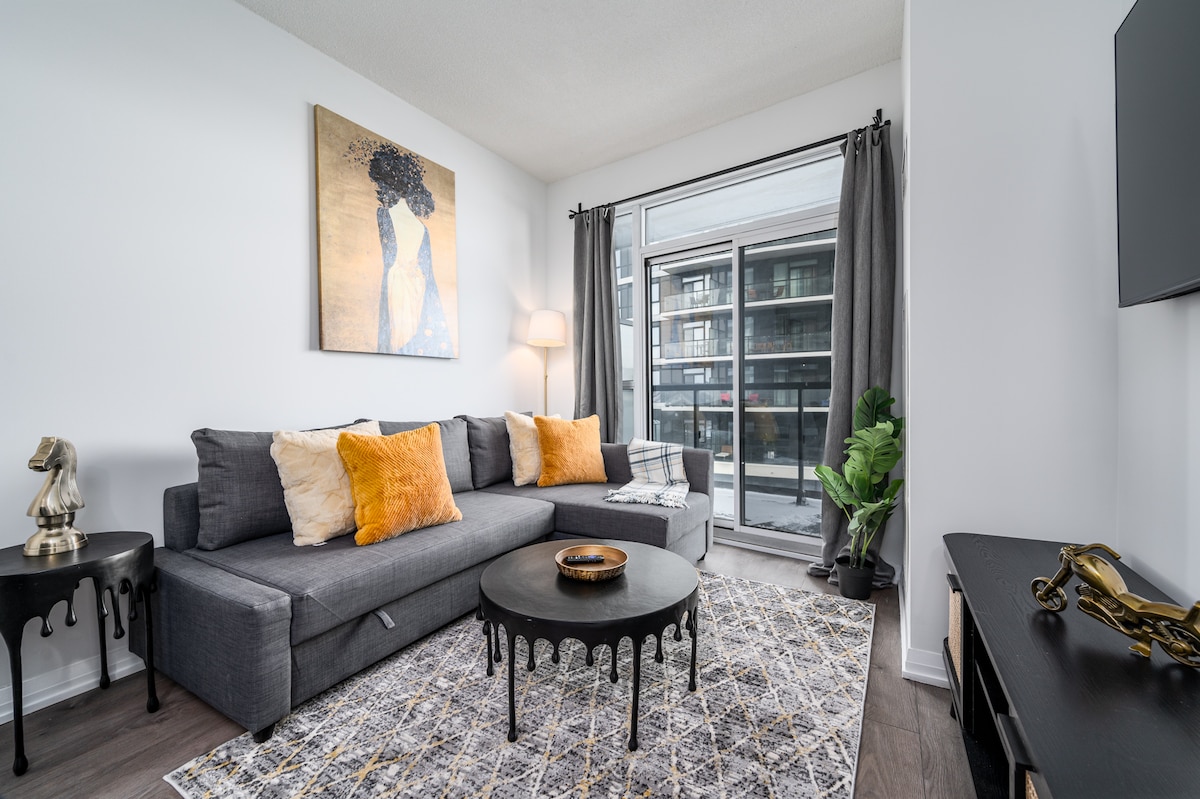 Welcome to this modern, sophisticated, and fully furnished 1-bedroom apartment located in the heart of Mississauga’s Square One district. Features 65” living room TV, bedroom TV, full kitchen with cookware and basics, washer/dryer, and fast Wi-Fi. Enjoy building amenities like a gym, secure fob access, parking, grocery store on-site, and close proximity to restaurants and LCBO. Just 15 minutes to Pearson Airport and 25 minutes to downtown Toronto attractions. Perfect for a couple & small groups.