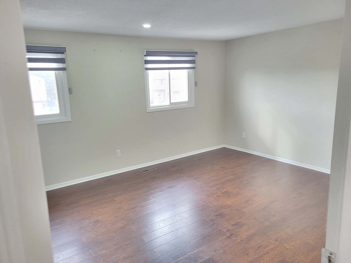 3 Bedroom. 2 Queen Beds 2 Single Beds. Your family will be close to everything when you stay at this centrally located home. 5 minute walk to Trillium hospital. 5 minute walk to all amenities. 2 minute walk to Major bus line. 3km to square one. Completely renovated first floor. Brand new kitchen, appliances, bathroom, hardwood floor, all electrical lighting, freshly painted, for you to experience. Free parking up to two cars, shared laundry, shared large backyard with patio and barbecue.