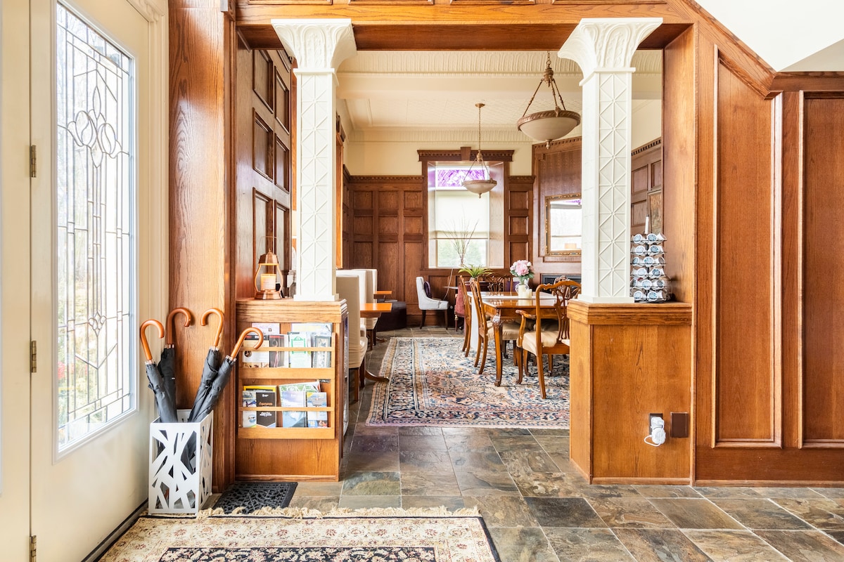 Visit Canada's Niagara Falls live in Castle Victoria 120-year-old historic stone and red brick building with towers and spires.The interior is original in design, with exquisite oak and original lighting, and beautiful antiques. Furniture and decor make you feel different value accommodation, you have a complimentary surprise breakfast and visit the entire beautiful building, 3 minutes walk to the bus stop and 25 minutes to the train station to Niagara Falls, no children under 12, free parking.