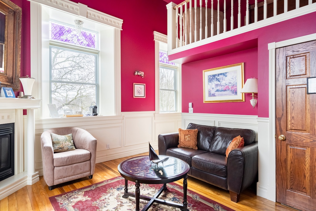 Visit Canada's Niagara Falls live in Castle Victoria 120-year-old historic stone and red brick building with towers and spires.The interior is original in design,with exquisite oak and original lighting, and beautiful antiques. Furniture and decor make you feel different value accommodation, you have a complimentary surprise breakfast and visit the entire beautiful building, 3 minutes walk to the bus stop and 25 minutes to the train station to Niagara Falls, no children under 12, free parking.