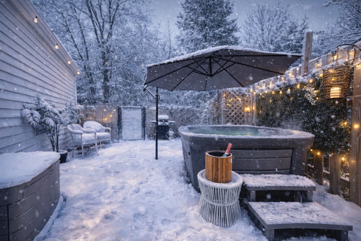 Our renovated "Modern Cottage" at Inn The Orchard offers the perfect retreat. Surrounded by nature, it’s just 20 minutes from Niagara Falls and top wineries around the corner. Relax in luxury with a sauna, cold plunge, and a private Cedar Hot Tub overlooking a beautiful cherry orchard. Our cottage offers the ideal escape from the city, while immersing you in Niagara's Country charm. We are excited to share our little piece of paradise and look forward creating memories in Niagara's Benchland.