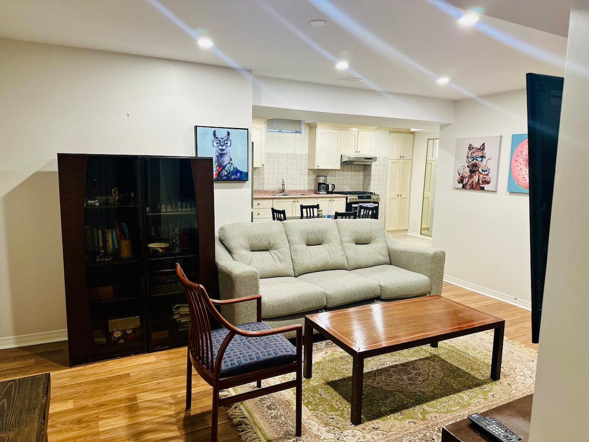 Our newly renovated basement apartment will enchant you with its contemporary style, brightness and coziness (large lookout windows, super bright!). It is fully furnished with style and attention to details so you can feel at home away from home. It is just a few steps away from the beautiful Mill Pond Park - a great place to immerse in the beauty of nature. The park has many lovely trails that you can explore. The apartment has everything you need to make your stay perfect.