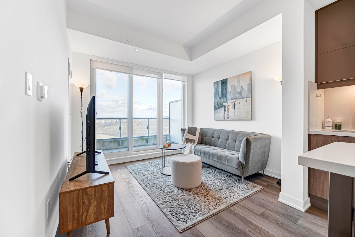 Immerse in urban luxury with this King Bedroom+Den gem in Toronto. The floor to ceiling windows fill the spacious living area and well-equipped kitchen. Extending to the inviting balcony with stunning South West lake and city views. Centrally located, it offers proximity to Union Station, Scotiabank Arena, CN Tower and the Rogers Centre. Making it the ideal choice for a chic and convenient downtown stay. Comfort and elegance harmonize in this urban retreat.