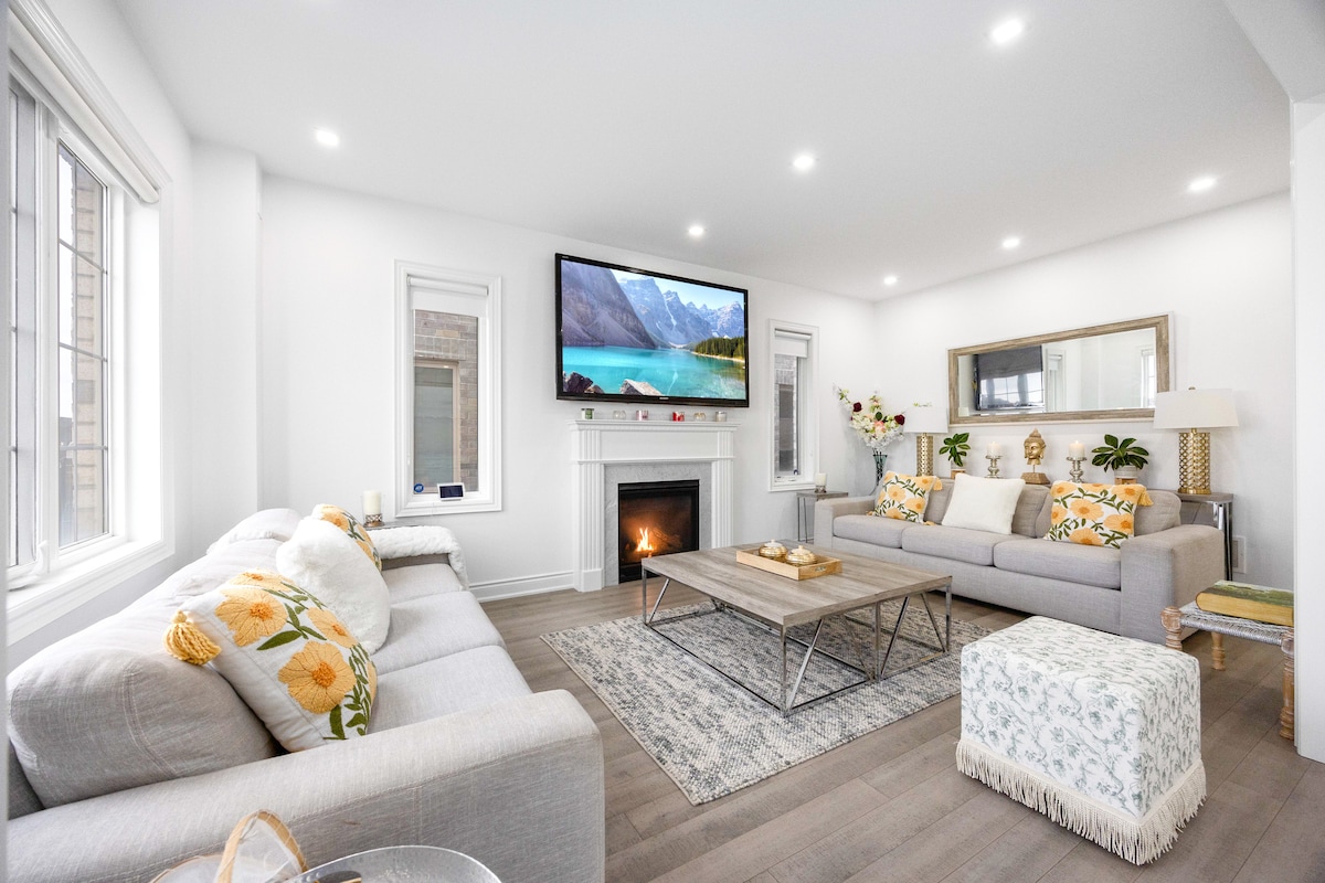 Forget your worries in this spacious, serene and unique house! Large backyard with a Swim Spa to enjoy! Backyard filled with fire places! 6 Bedroom, 7 beds, 4 full baths, 4 offices, 3 family rooms, 9 TV, equipped kitchen, patio, board games, BBQ grill, fire place, Tesla charger. Quiet yet central from downtown Oakville, highways, groceries, shopping, bars, restaurants, cafe's and much more! Always professionally cleaned. For elderly guests a bedroom and full bath is on ground floor.